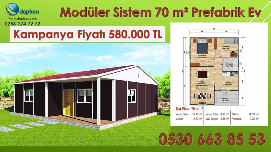 TEK KATLI PREFABRİK KONUT / 68m² Prefabrik Ev